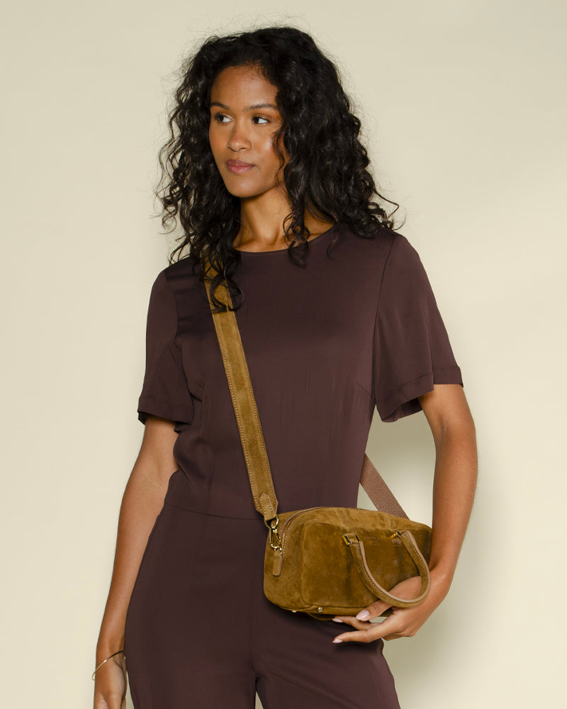 Petit sac en cuir suédé / petites hanses et une grande bandoulière