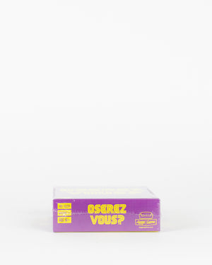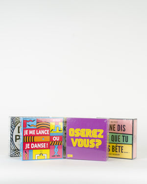 "Oserez-vous ?" est un jeu exaltant inspiré du célèbre thème "cap ou pas cap". Envie de pimenter vos soirées ? C’est exactement ce qu’il vous faut ! Avec ses défis audacieux et son ambiance survoltée, ce jeu garantit des moments de folie et des fous rires inoubliables.