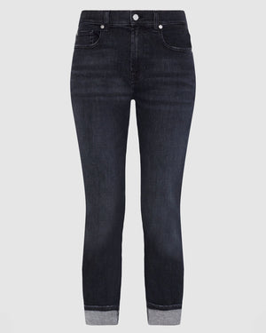 Coupe skinny / jean droit stretch / coupe courte taille mi- haute / Noir intense et revers