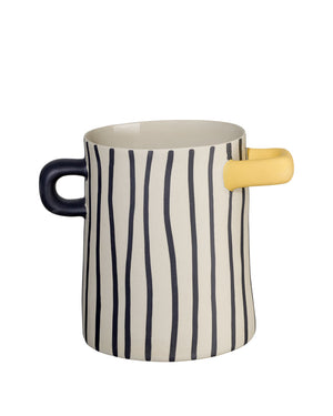 Apportez une touche de modernité et de caractère à votre décoration avec ce vase asymétrique rayé noir et écru. Son design unique allie lignes graphiques et formes organiques pour un effet visuel saisissant. Parfait pour accueillir des fleurs fraîches ou séchées, ce vase devient également un objet déco à part entière.