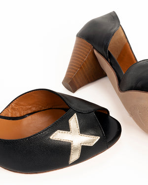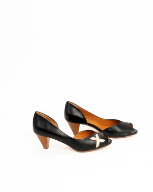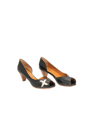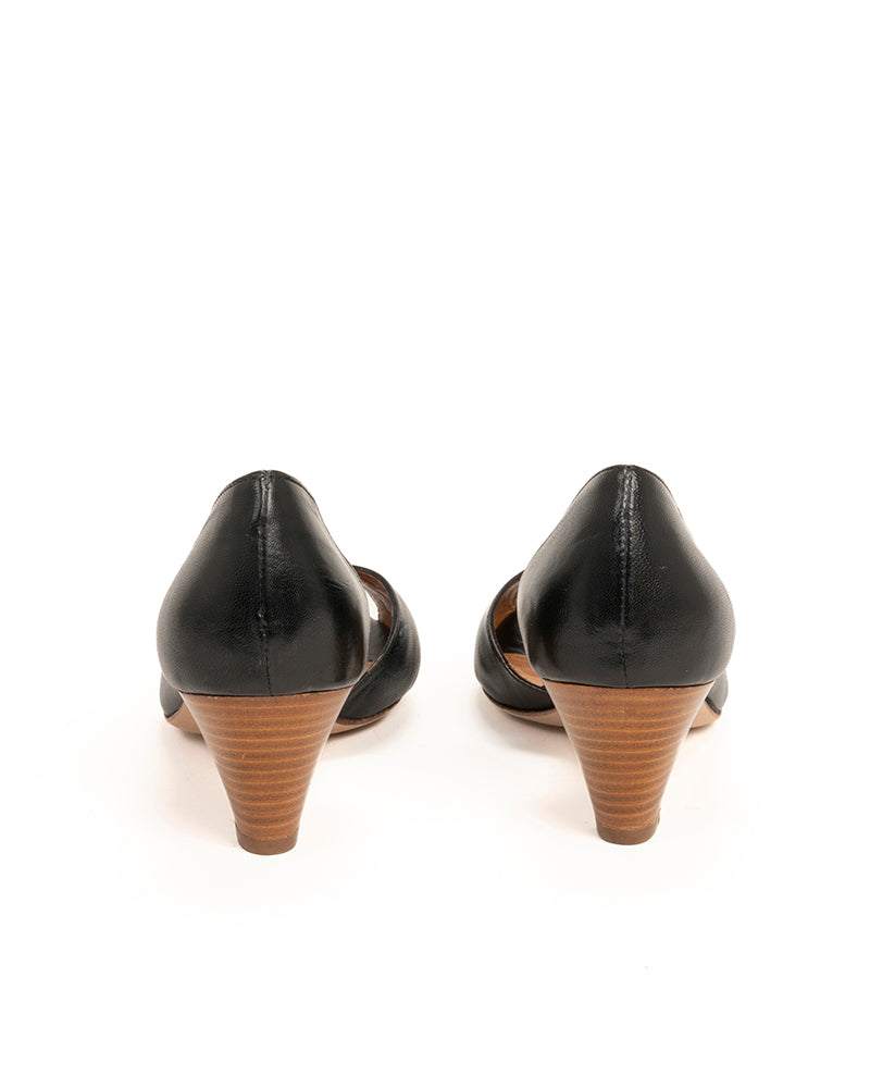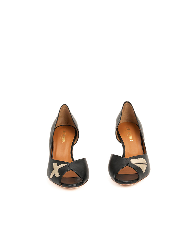 Escarpins en cuir noir ouvert à l'intérieur ainsi que sur le devant de la chaussure.