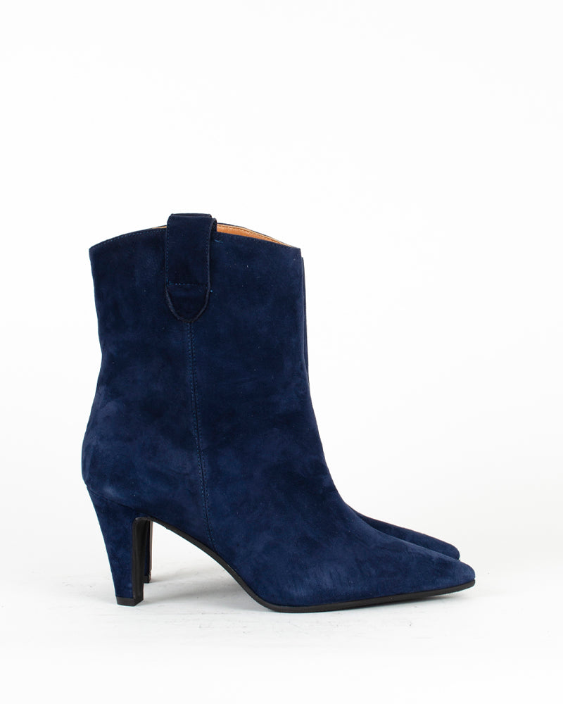 Des boots à talon en cuir suédé de couleur bleu nuit et de la marque Les Venues. Coup de cœur pour cette paire de boots à talon en velours bleu nuit, féminine et chic !