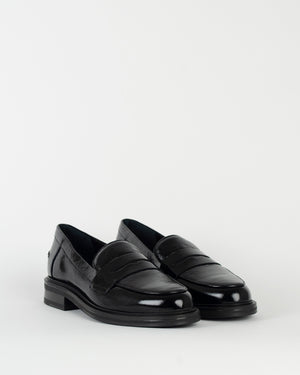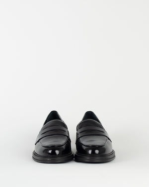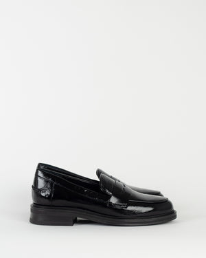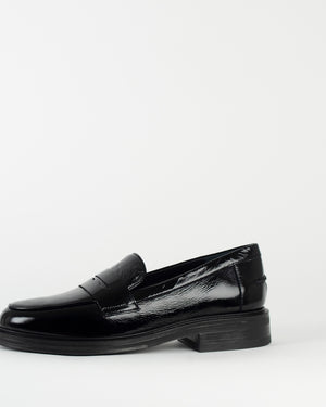 Des mocassins pour femme en cuir noir vernis de la marque Billi Bi. Cette paire de mocassins vernis noirs en cuir marqué a une allure chic et old school ! L'indispensable chaussure de la rentrée c'est ce mocassin noir vernis pour femme.