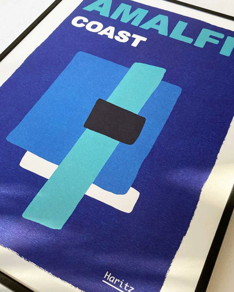 Affiche Biarritz de la marque Haritz Dimensions: 30x40 cm Avec un motif plutôt abstrait, on est fan de ce design dans les tons bleus pétant, cette affiche de la marque Haritz d'Amalfi nous a fait craquer. Avec un papier haute qualité avec un grammage de 250g, cette affiche est de super qualité ! Le cadre est vendu séparément.