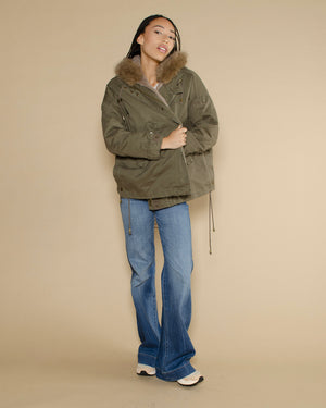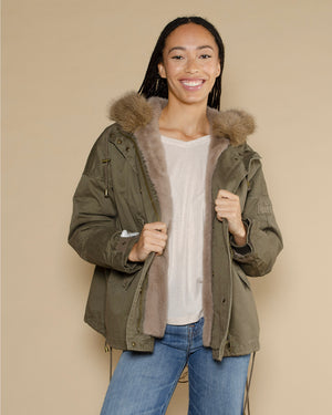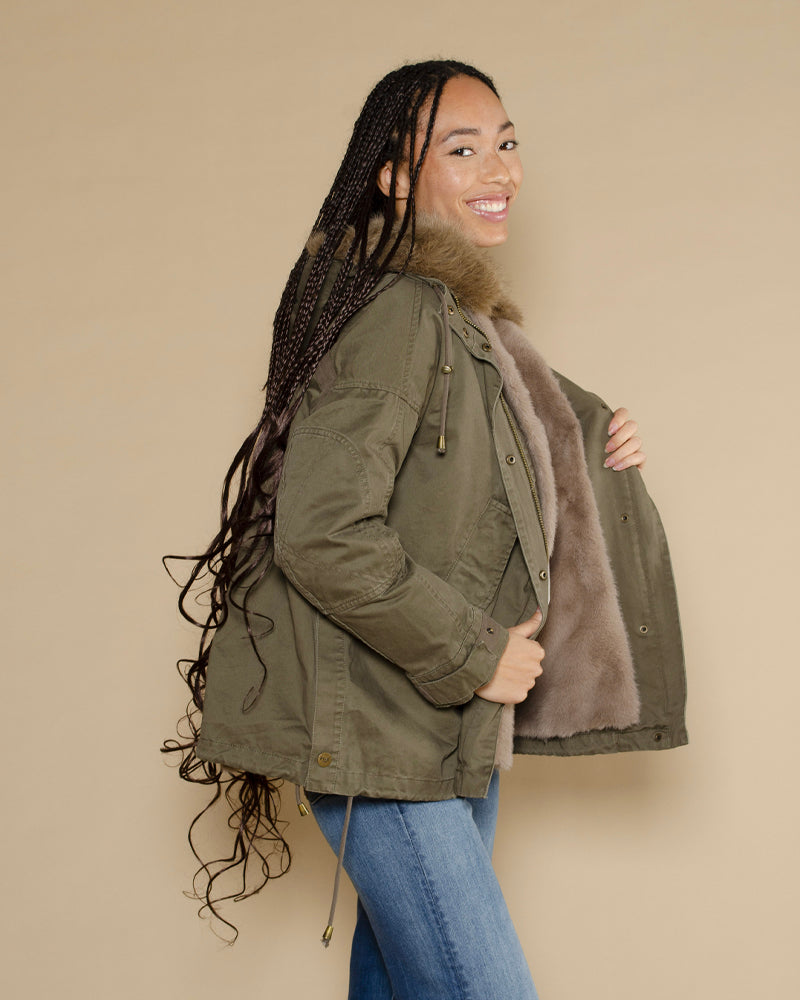 Une parka pour femme de couleur vert kaki et de la marque Five. On adore cette parka pour femme idéale pour un hiver bien au chaud, sa fausse fourrure donne une allure très chic à cette parka Five !