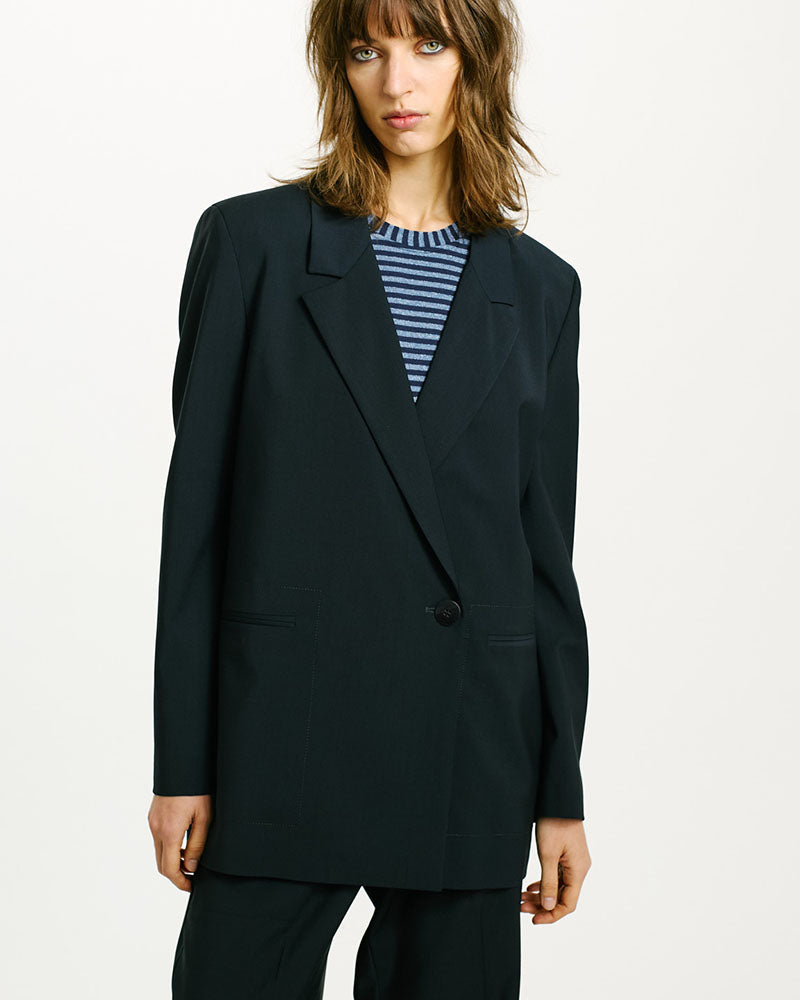 Une veste de couleur bleu nuit pour femme de la marque Momoni. On adore cette veste pour femme parfait pour un look chic en toute circonstance ! Retrouvez la collection Momoni ici !