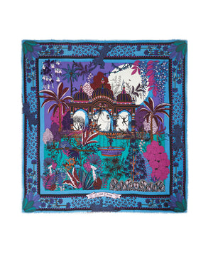 Foulard imprimé fantaisie dans les tons de bleu, foulard carré en laine mélangé. Un véritable accessoire de mode pour un look tendance et féminin.