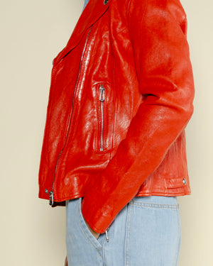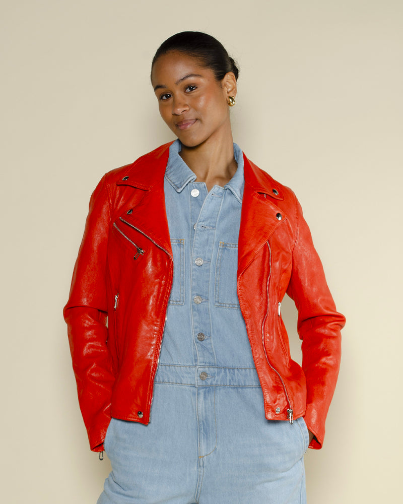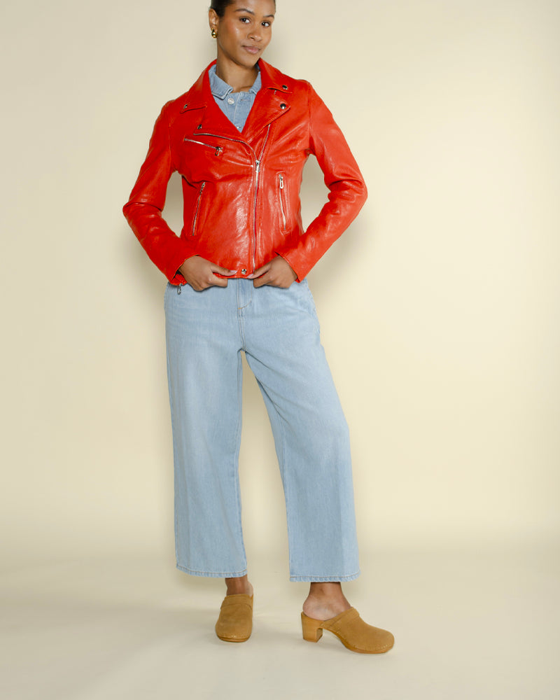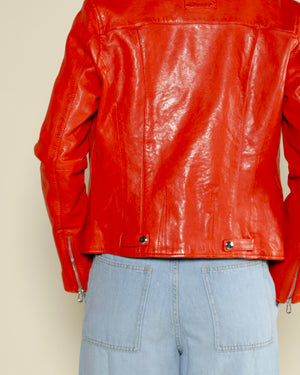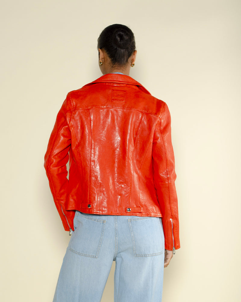 Découvrez la veste orange en cuir Rose Garden, une pièce unique alliant sophistication et audace. Cette veste apporte une touche de modernité à votre garde-robe. Sa coupe impeccable et ses détails raffinés font d'elle un vêtement polyvalent, idéal pour des occasions formelles ou décontractées.