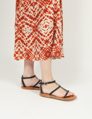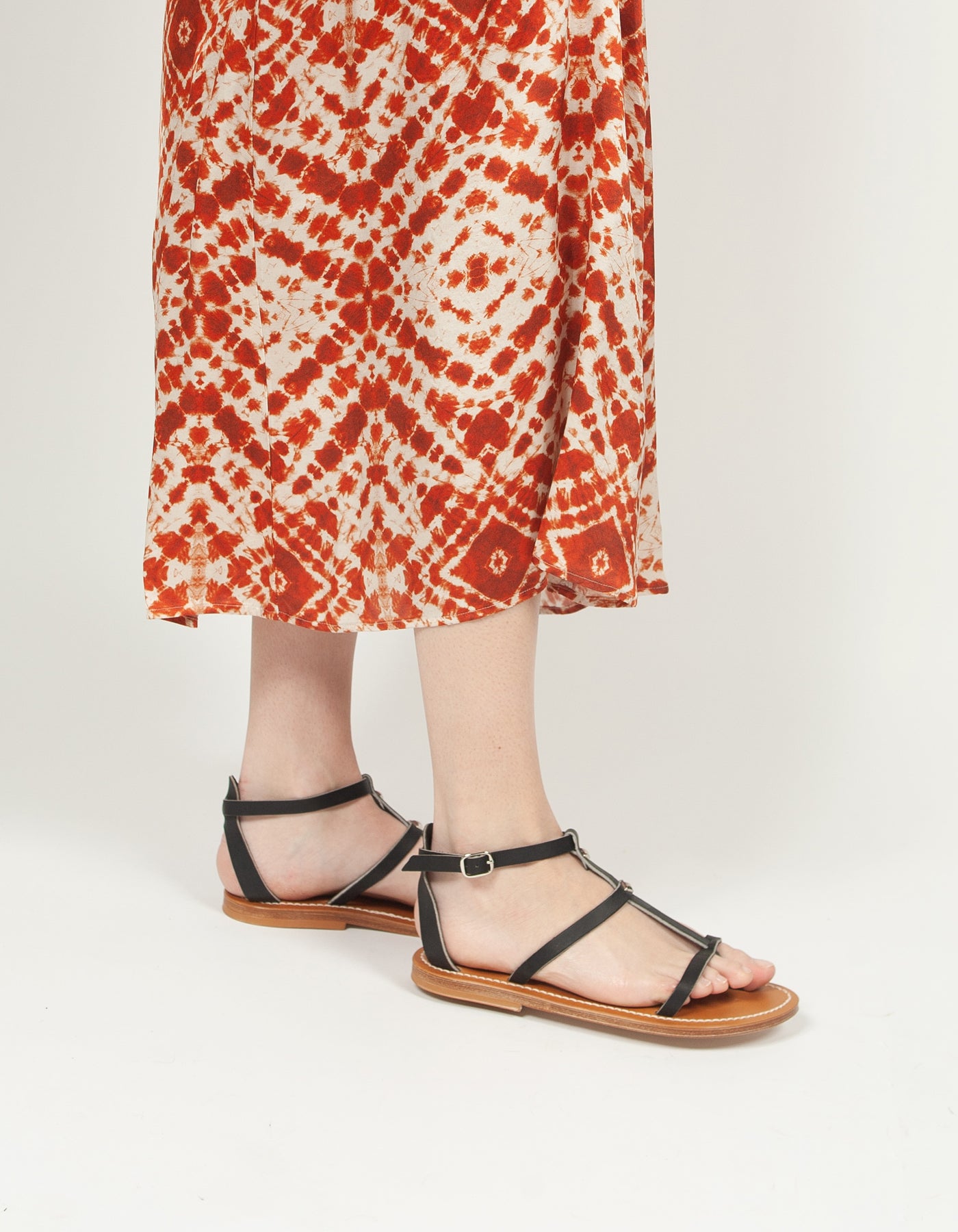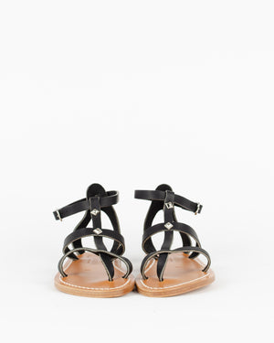 Des sandales Antioche noires de la marque K.Jacques. Ces sandales noires Antioche en cuir avec une bride au niveau des orteils sont tendances. Deux jolis petits clous habillent la bride sur le dessus du pied. Une paire féminine et chic. Vous aimerez également ces sandales Antioche vertes de la marque K.Jacques.