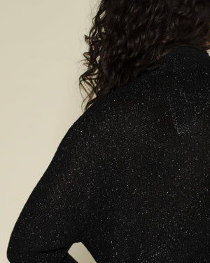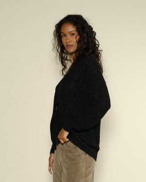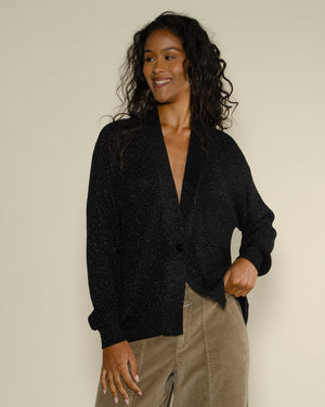 cardigan coupe oversize en point d'épi / fil de viscose métallisé / bord en bande en côte élastique / bas de manche et de vêtement en côte / boutonnage en nacre