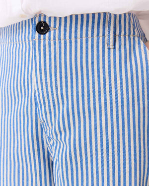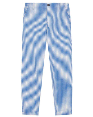 Pantalon Armina de la marque Leon and Harper. On adore les détails "cargo" sur les côtés et sa coupe droite. L'imprimé rayé bleu et blanc fait de ce pantalon une pièce ultra-tendance. On l’imagine parfaitement associé à un joli tee-shirt oversize pour un look moderne et streetwear !