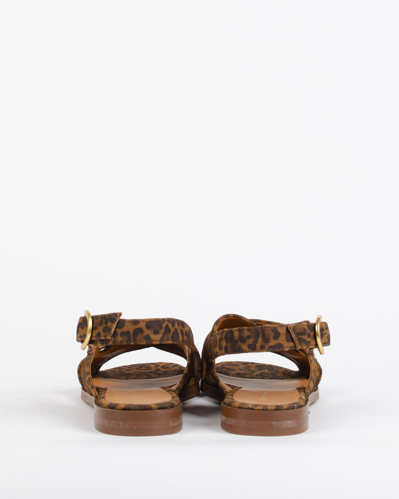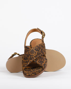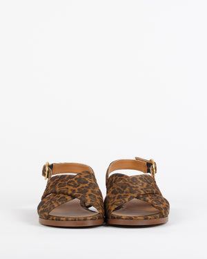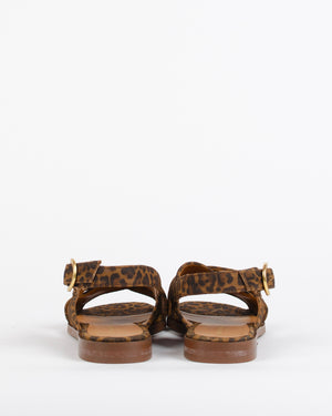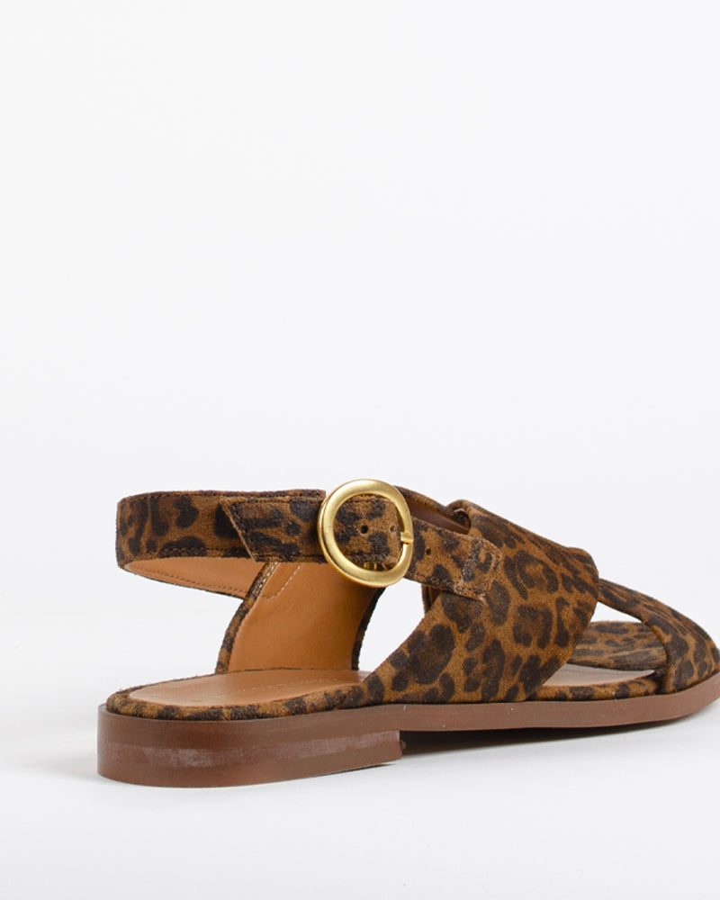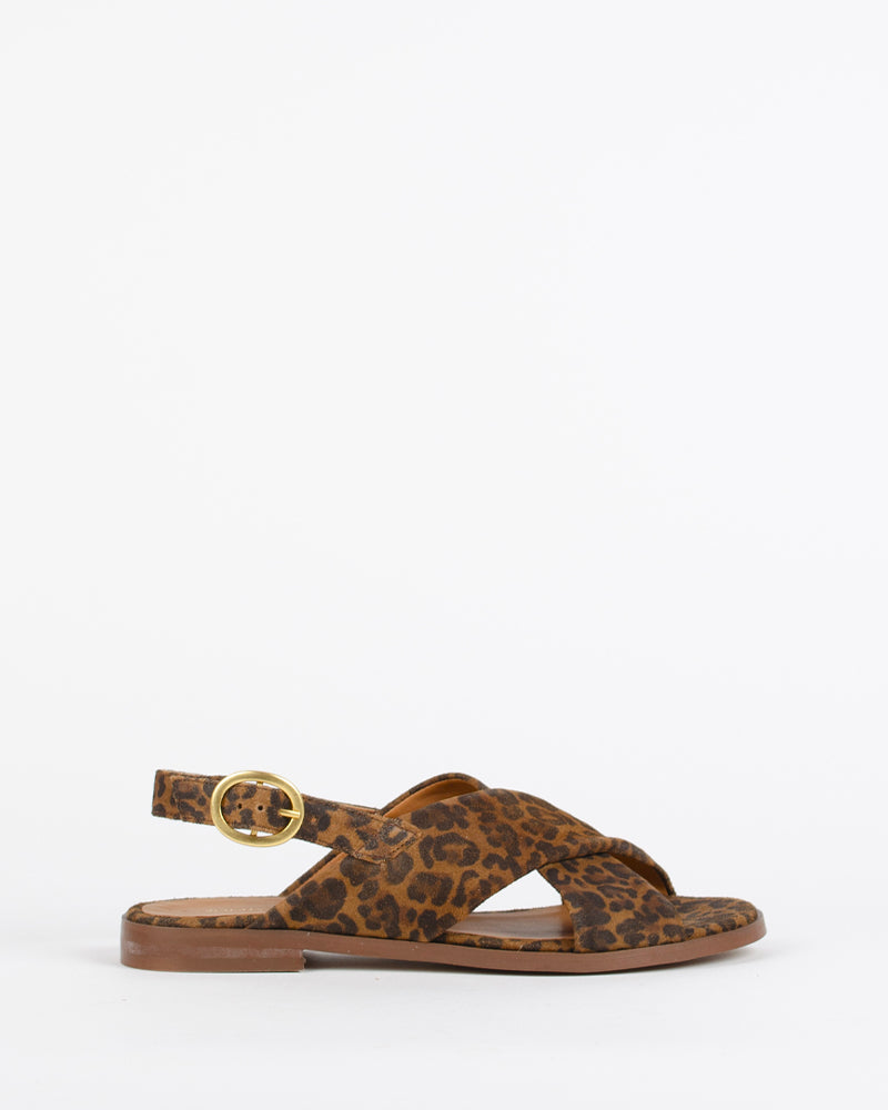 Sandales croisées à doubles lanières, de la marque Maison Toufet. Ces sandales léopard, avec leurs lanières croisées sur le devant du pied, allient à la perfection style, confort et élégance. Parfaites pour un look chic et décontracté, ces mules sont un véritable incontournable de la saison.