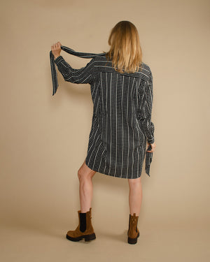 Robe de la marque Laurence Bras Coloris : Noir, Blanc Composition : 100% viscose Une robe mi-longue pour femme avec un col lavallière de la marque Laurence Bras. Un imprimé géométrique noir et blanc ultra tendance qui va parfaitement avec des boots Maison Toufet par exemple ! Notre mannequin mesure 1m75 et porte une taille 36