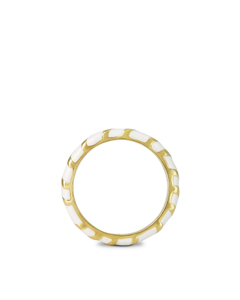 Bague anneau Aimée de chez Cabirol entrelace le vermeil et la laque. La mixité de la couleur blanche et du métal donne un côté vraiment original à la bague.