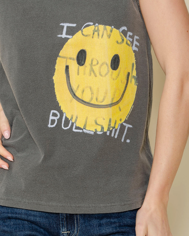 t-shirt débardeur biker smiley / coupe tendance et agréable à porter / smiley jaune et badges signature de la marque