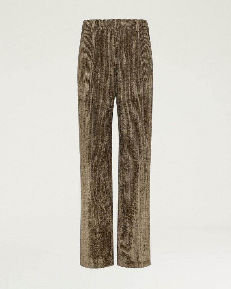 pantalon pince en velours côtelé / sangle construite avec passants / fermeture avec zip et bouton en corne