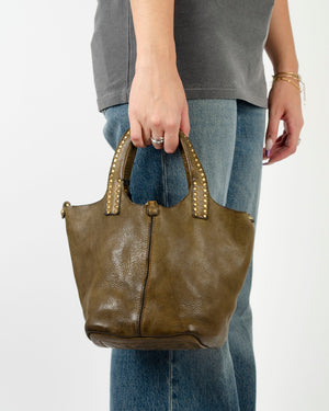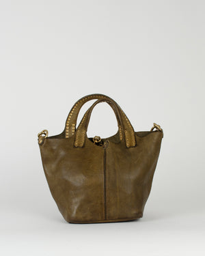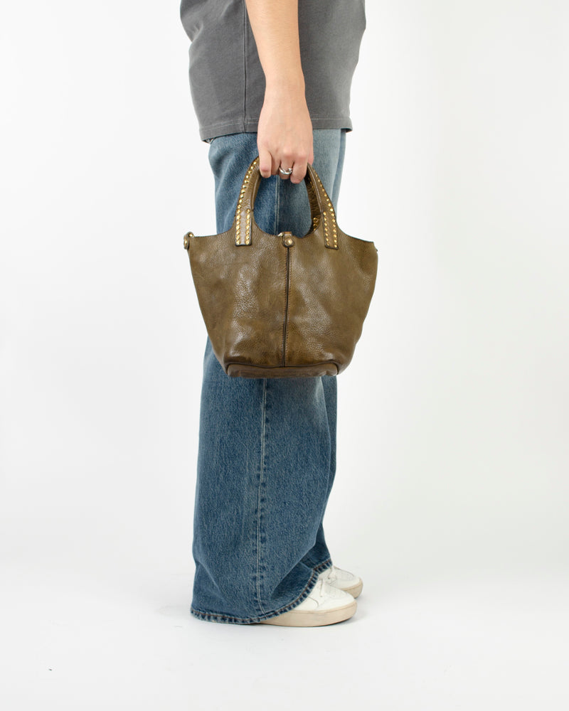 Coup de cœur de la saison, on est fan du mini sac cabas de la marque Campomaggi. La forme est moderne et le format est parfait pour mettre tout ce dont vous avez besoin. Un mini sac aussi pratique que stylé avec ses rivets couleur or.