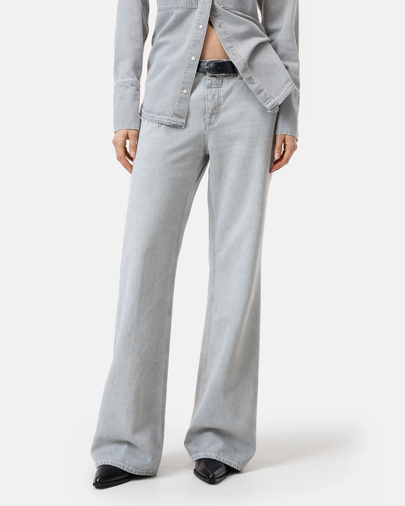Le jean Gillan gris clair pour femme de la marque Closed. On adore ce jean Gillan à la coupe flair très années 80. Il est fabriqué en pur coton et a un touché soyeux. Possédant de grandes poches à l'avant et de larges passants de ceinture, il reste intemporel et élégant.