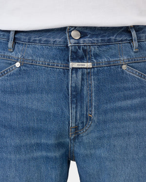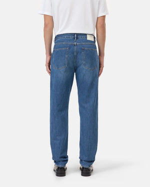 Coupe regular / Taille mi-haute / Poches en X / Coutures latérales à triple surpiqûre / Effets de grattage et moustaches discrets / Abrasions faites main
