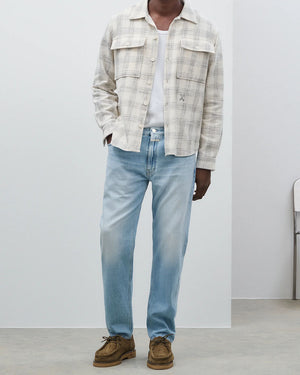 Un jean en denim délavé pour homme de la marque Closed. Confectionné en denim léger et ultra-doux (9,5 oz.), ce modèle 5 poches présente une taille mi-haute et des jambes droites. Le denim bleu foncé à effet usé est parfaitement adapté à l’été avec sa texture twill authentique, ses slubs équilibrés et ses coutures tabac. Fabriqué en Italie. Retrouvez toute la collection Closed Homme ici !