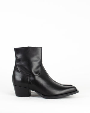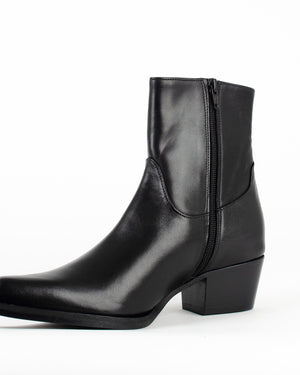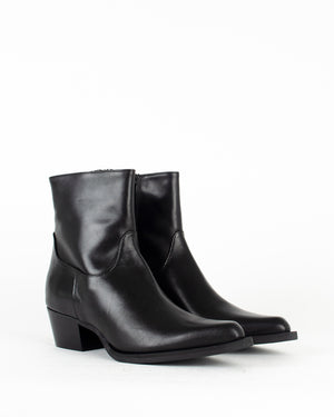 Des santiags en cuir suédé de couleur noir et de la marque Les Venues. On est fan de ces santiags noires pour femme en cuir suédé, confortables et ultra tendance !