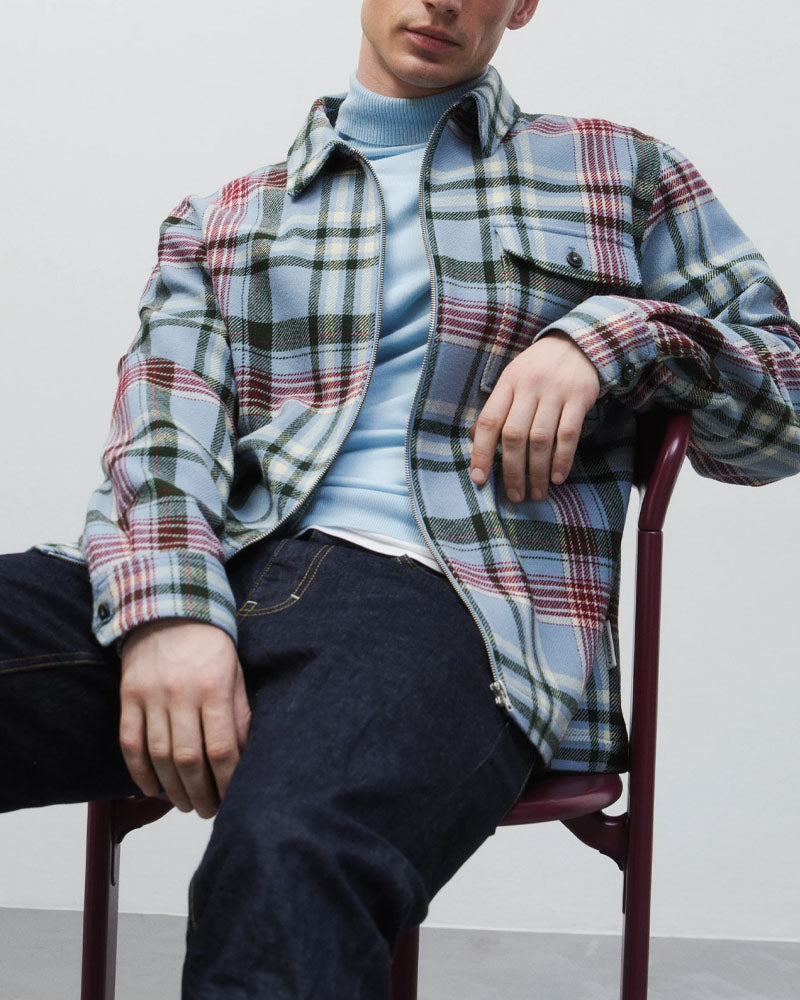 Silhouette classique / Manches longues / Fermeture double : boutons + zip / Poche poitrine boutonnée / Poignets réglables / Col structuré
