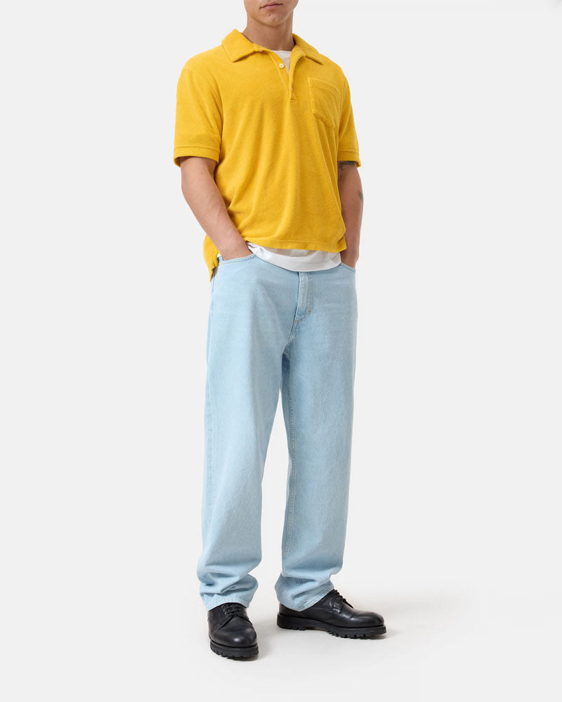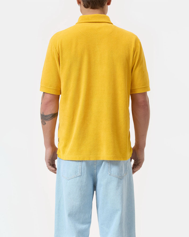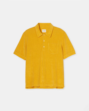 Chemise en tissu éponge à col polo et patte de boutonnage avec boutons en nacre, en mélange de coton doux produit au Portugal avec une poche poitrine et des fentes latérales.