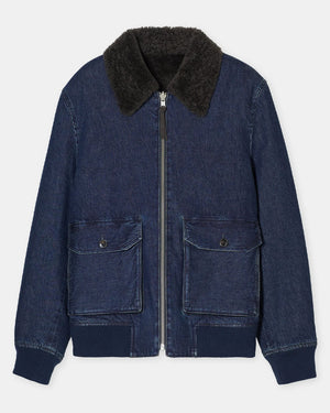 Coupe classique / Deux vestes en une / Fermeture éclair double sens / Poches plaquées sur le côté peau / Poches passepoilées sur le côté denim / Look inspiré des années 80