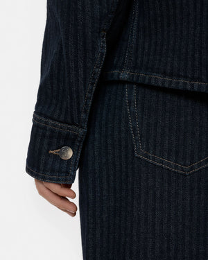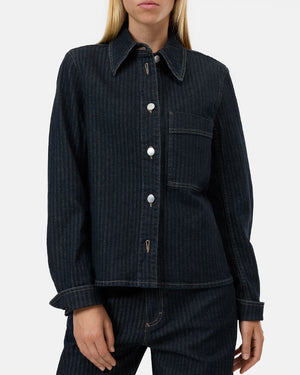 Coupe droite / Longueur classique / Poche poitrine avec surpiqûre angulaire / Boutons métalliques / Fils contrastés / Fabriquée en Italie