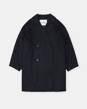 Un manteau pour femme de couleur bleu nuit et de la marque Closed. On adore ce manteau court pour femme, féminin et chic, un must-have de l'hiver !