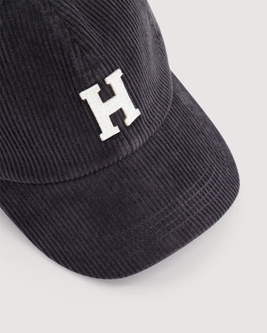 Velours côtelé / Couleur anthracite / Lettre "H" brodée / Style baseball classique / Look casual / Accessoire emblématique / Ajustable et confortable