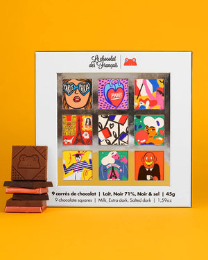 Les Carrés Parisien sont un véritable délice, fabriqués avec des fèves de cacao de qualité provenant d’Équateur et du Pérou. Le chocolat est réalisé selon un savoir-faire artisanal, en utilisant des ingrédients naturels soigneusement sélectionnés. Ces petits carrés de chocolat sont parfaits pour être partagés lors d'un moment convivial en famille ou entre amis. L’illustration par des artistes talentueux apporte une touche unique et sympathique à chaque carré. Retrouvez ici toute la gamme Le chocolat des Français !