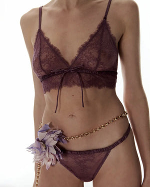 Culotte en dentelle avec taille élastiquée recouverte d'un tissu ruché de la marque LoveStories. Parfaite avec la bralette Gwen !