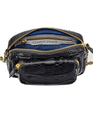 Un sac bandoulière en python de couleur noir très chic. Il dispose de plusieurs espaces de rangement pour vous permettre de vous balader avec votre attirail ! On adore la forme intemporelle du Charly !