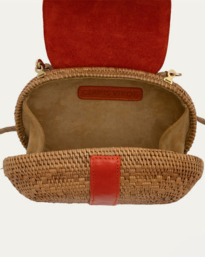 Un sac Chiara de couleur naturelle et corail et de la marque Claris Virot. Ce sac Chiara en cuir et osier naturelle nous rappelles les douces plages des îles espagnoles... On aime son coloris et sa forme originale style minaudière. Le sac Chiara peut se porter à la main ou à l'épaule. Découvrez également le porte monnaie Alex corail de la marque Claris Virot.