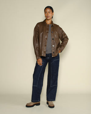 Veste Oakwood marron / Coupe droite esprit workwear / Col chemise classique / Fermeture boutonnée sur le devant / Poches poitrine et latérales pratiques