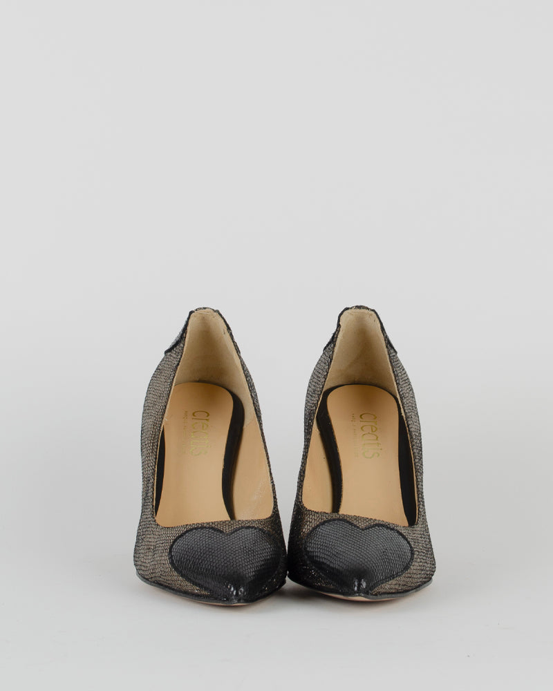 Ces escarpins pour femme de la marque Creatis ont conquis notre coeur! L'élégance et le style qu'ils donnent à une tenue sont iconiques ! On adore les voir portés en contraste avec des pièces très décontractées. laissez simplement dépasser de votre jean coupe droite, le petit coeur sur la pointe de l'escarpin, pour être la plus stylée !
