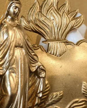 Décoration murale dorée de la marque Boncoeurs. On craque complètement pour les Ex-Votos de la maison Boncoeurs à la fois baroque et tendance. Fondez devant ce coeur ardent doré qui apportera lumière et chaleur à vos murs une fois accroché. Cet Ex-Votos entièrement réalisé à la main est une pièce unique et délicate.