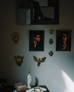 Décoration murale dorée de la marque Boncoeurs. Apportez une touche unique et symbolique à vos murs avec cet Ex-Votos en forme de coeur. A la fois baroque et tendance, on adore ce coeur argentée pour sa fabrication manuelle qui fait de cet Ex-Votos une pièce délicate et originale.