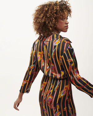 Robe de la marque Wild Coloris : Noir imprimé Composition : 58% viscose, 42% rayonne Une robe pour femme de la marque Will à manches longues et à rayures imprimées idéale pour cet hiver ! On craque complètement pour l'ensemble des couleurs associé à un imprimé de plumes multicolores. Cette robe longueur mid dessine une silhouette féminine avec un décolleté en V et sa coupe resserrée à la ceinture !