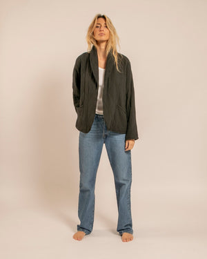 La veste kimono cuba noire pour femme de la collection Aokyanos incarne l'élégance et le confort. Conçue pour être portée aussi bien à l'extérieur qu'à la maison, elle s'associe parfaitement à vos tenues préférées. Les manches sont classiques contrairement au modèle Chicago qui a des manches kimono.