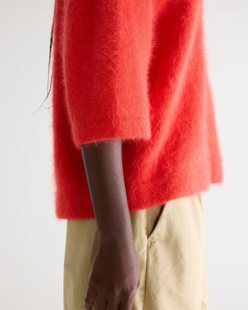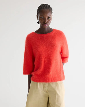Coupe décontractée / col rond / manches mi-longues / mélange d'angora