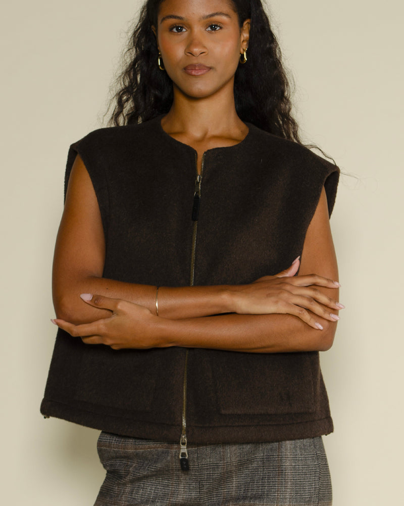 gilet sans manches flanelle / coupe moderne et raffinée / fermeture et poches à l'avant
