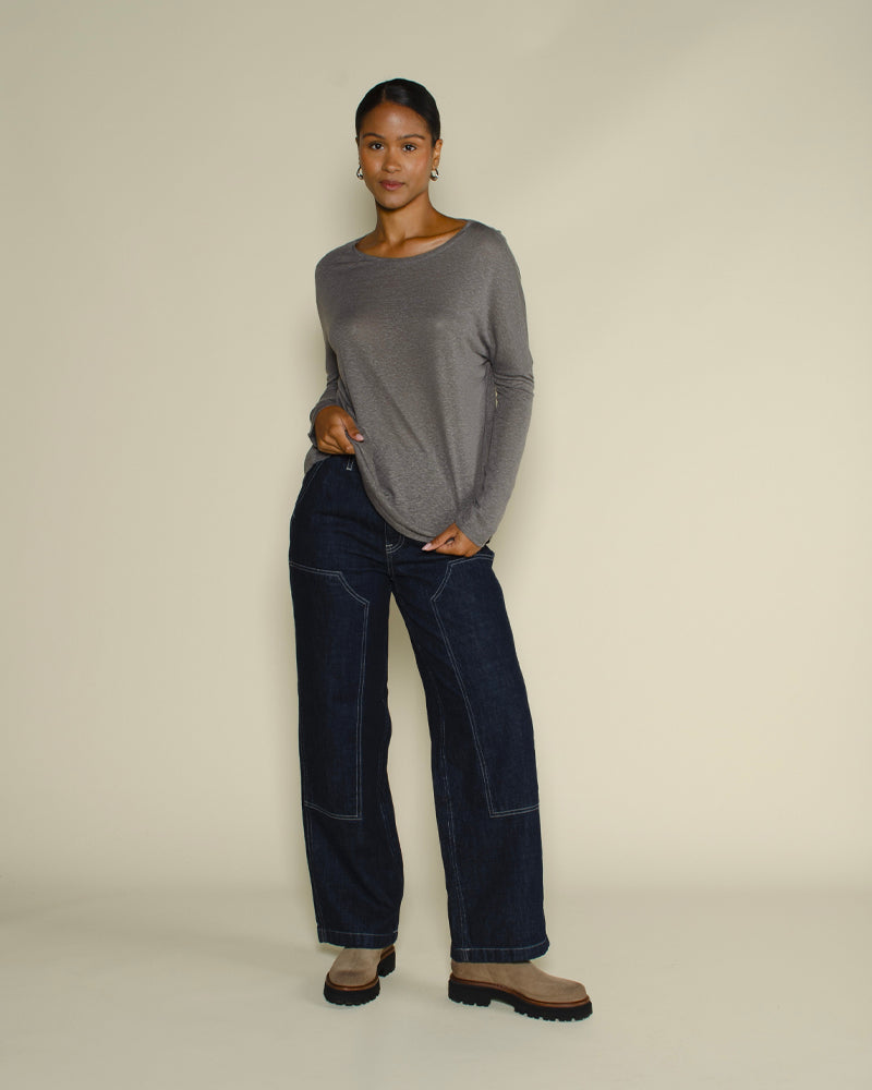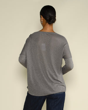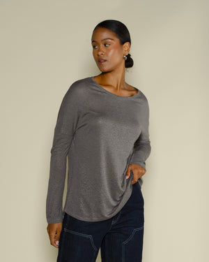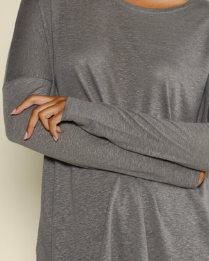 T-shirt Suny gris manches longues / Coupe fluide et décontractée / Tissu doux et respirant pour un confort au quotidien / Matière légère idéale en layering ou porté seul