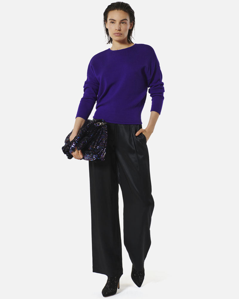 C'est un pull avec une encolure en V dans le dos signé Karma Koma. Il y a un noeud en bas du dos et l'encolure est arrondie. On est fan de cette couleur qui réveillera vos looks un peu sombre pour cet automne/hiver.