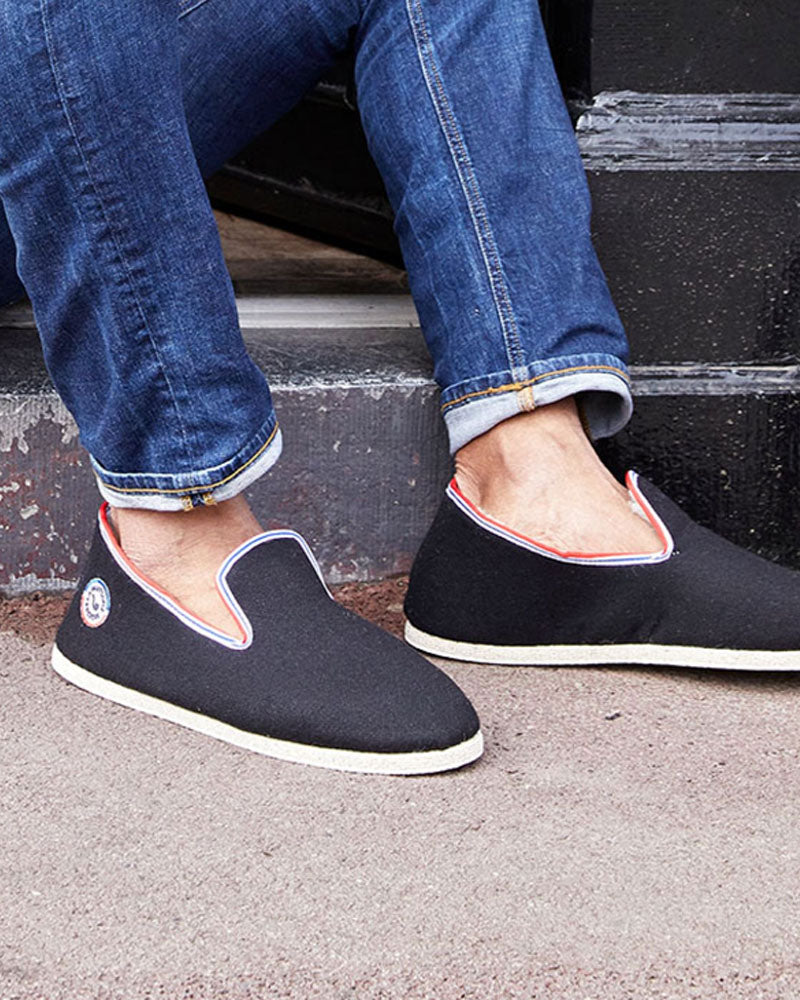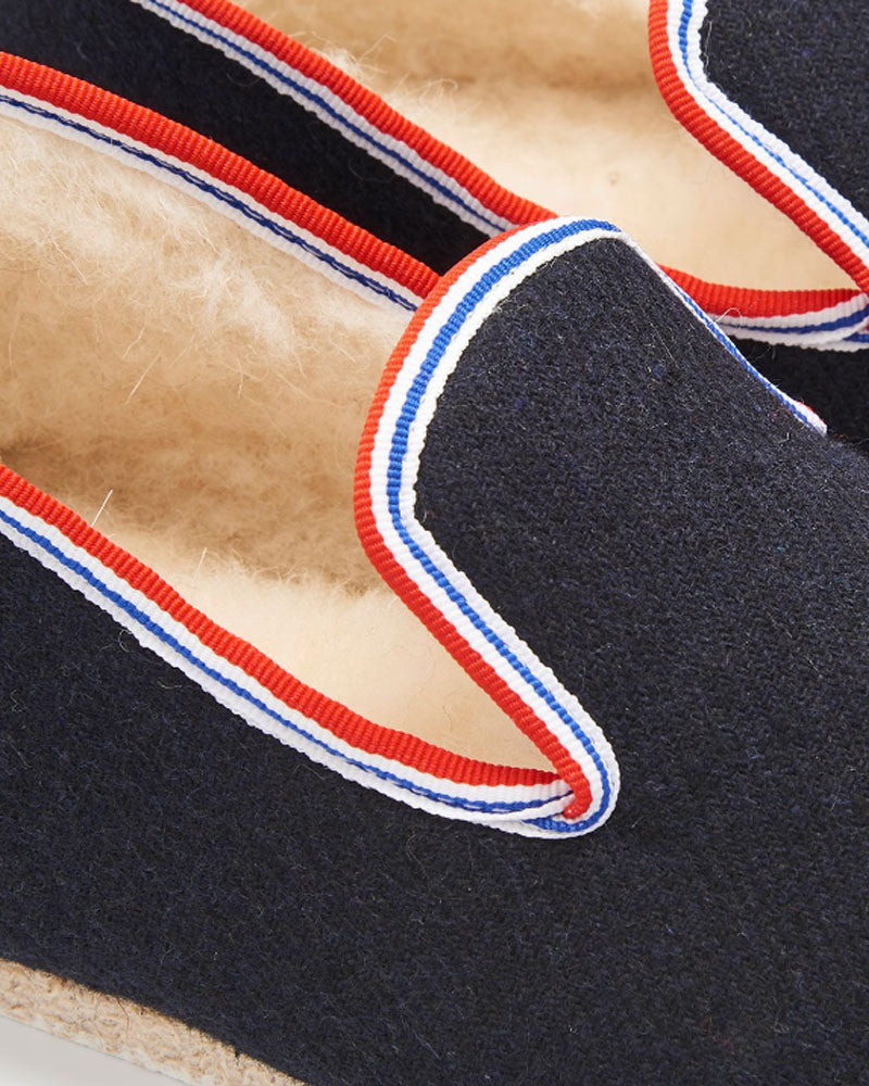 Une paire de pantoufle pour homme de la marque La pantoufle à Pépère. On craque pour ces charentaises avec un intérieur tout doux et un liseré bleu blanc rouge!
