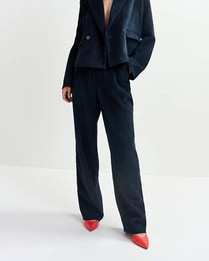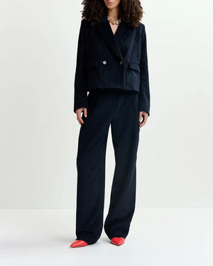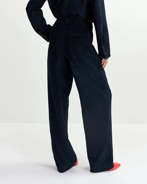 Un pantalon Gardenia de couleur bleu navy pour femme de la marque Essentiel Antwerp. Un pantalon en velours côtelé parfait pour la saison ! Ce pantalon pour femme en velours côtelé est chic et basic, un intemporel.