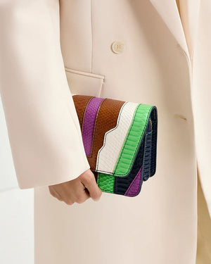 Un sac Gello multicolor pour femme de la marque Essentiel Antwerp. On adore ce sac à main en faux python ! Très coloré, ce sac pour femme by Essentiel viendra accessoiriser toutes vos tenues.