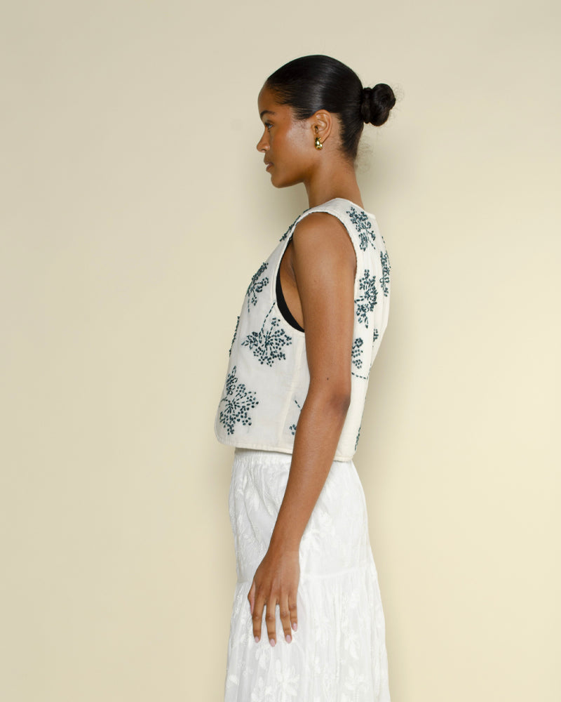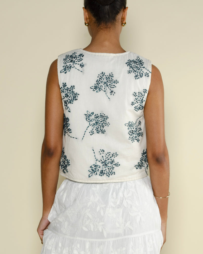 Le gilet sans manche en coton est une pièce qui permettra de compléter vos looks et apporter une touche de lumière. Ce gilet sans manche à brodé apporte une touche mode à votre tenue !