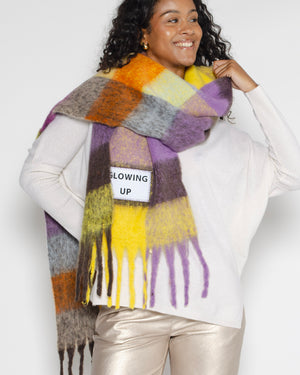 L'écharpe multicolore "Glowing up" de Verb To Do est un accessoire coloré et stylé ! Cette écharpe vous démarquera avec élégance cet hiver et ajoutera une touche de vie à vos tenues. On est vraiment fan du design de ces écharpes aux messages atypiques !